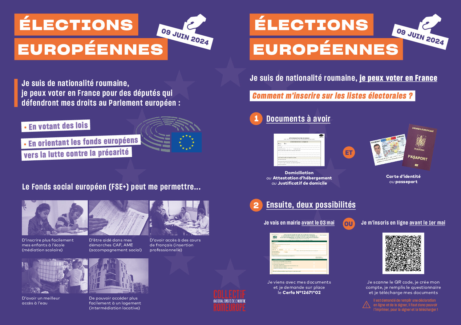Elections européennes du 9 juin 2024 : diffusion d'un flyer informatif à destination des personnes de nationalité roumaine et bulgare A l'approche des élections européennes qui se tiendront le 9 juin 2024, le CNDH Romeurope a produit un flyer visant à sensibiliser et à informer les ressortisant·es roumain·es et bulgares sur les enjeux et les modalités [...]
